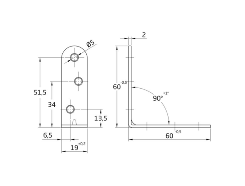 Ângulo de reforço em aço. Canto arredondado. Para fixar ou montar móveis de madeira.