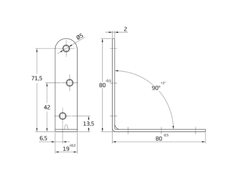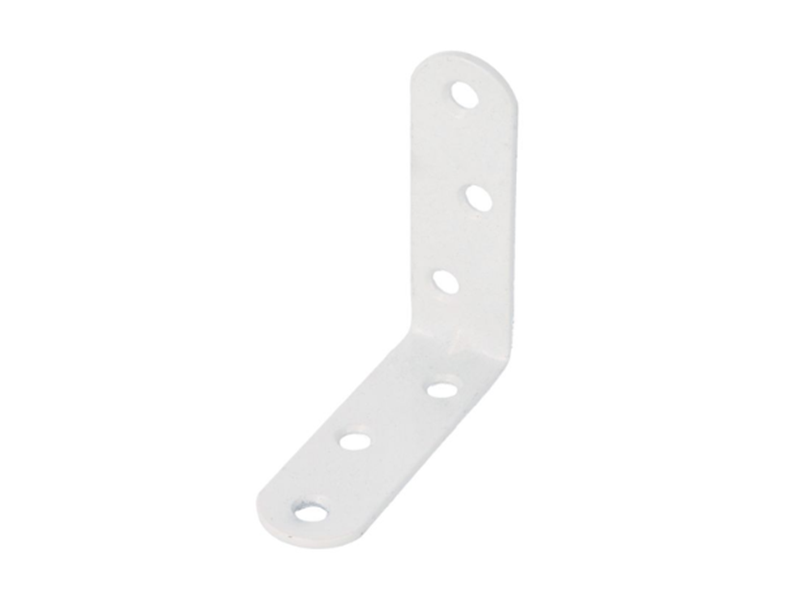 Ângulo de reforço em aço. Canto arredondado. Utilizado para fixar ou montar móveis de madeira.