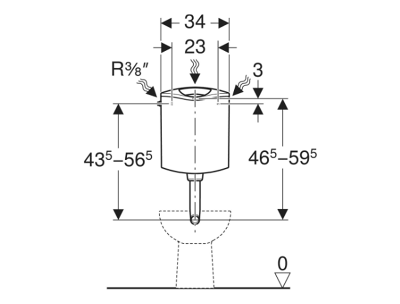 Ligação ao abastecimento de água lateral ou atrás ao centro
