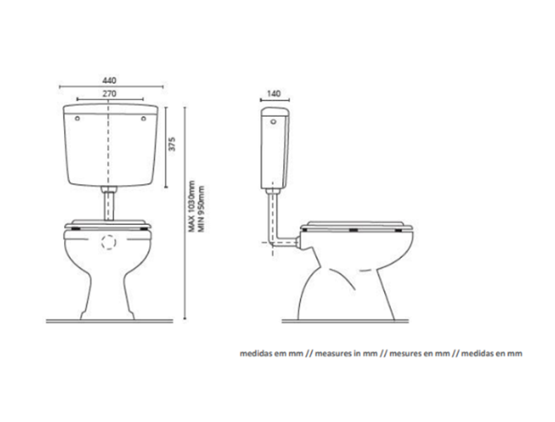 • Entrada de água lateral (esquerda/direita)