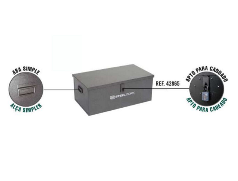 - Modelo compacto de 90 litros, ideal para espaços reduzidos, carrinhas ou como complemento modular. Estrutura em aço com fecho preparado para cadeado.