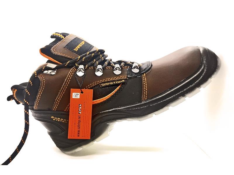 A bota de proteção S1P. Bota de Proteção de trabalho com cordões em cor castanha. Sola com dupla densidade de poliuretano injetado. Bota de Proteção resistente a acidentes a óleos e derivados, super leve e antideslizante. Com biqueira em compósito, antiestático e transpirável.