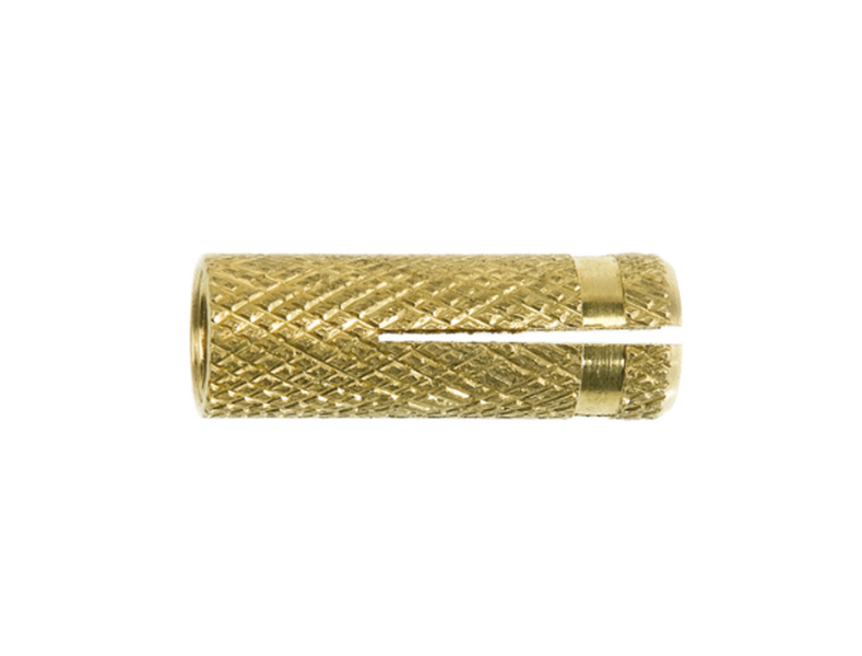 A bucha de latão com rosca métrica interior e com a superfície exterior rugosa, para proporcionar uma melhor aderência dentro do furo.