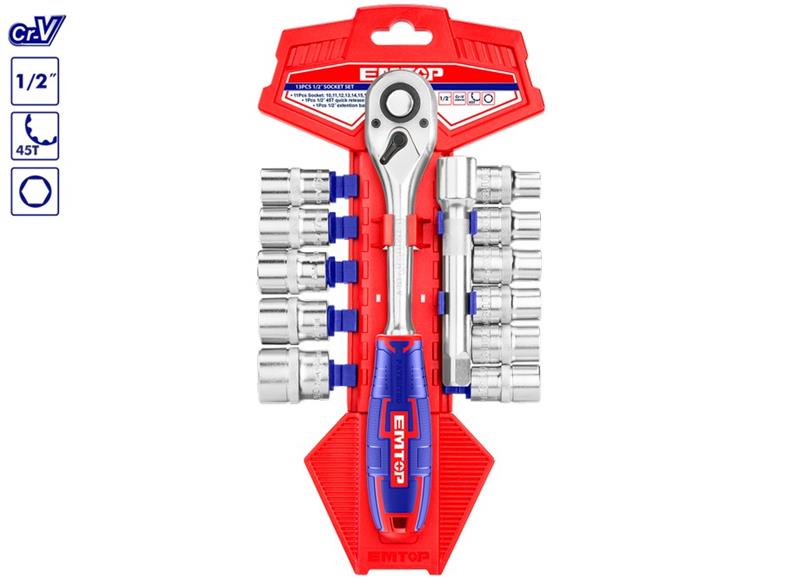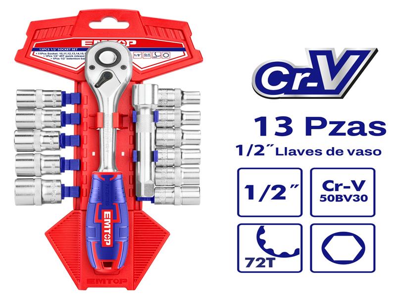 Conjunto De 13 Peças EMTOP 1/2" Cr-V