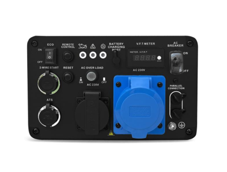 Gerador insonorizado com um nível de ruído máximo de 65 dB a 50% de carga, ideal para aplicações domésticas ou profissionais onde o silêncio é necessário. Permite o funcionamento em paralelo com outros modelos da gama e inclui conexão de 2 fios para integração fácil com um inversor fotovoltaico e carregador de bateria.