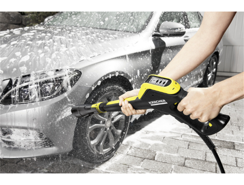 Basta rodar a lança para selecionar o jato pretendido. A pressão é ajustada de forma prática através dos botões na pistola.Compatível com as lavadoras de alta pressão Kärcher K 7 Smart Control, K 7 Full Control Plus e K 7 Premium Full Control Plus (a partir de 2017).