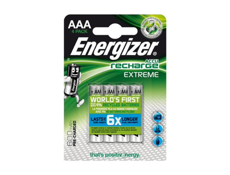 Pilhas Recarregáveis ENERGIZER 800mAh AAA BL4 4 Unidades