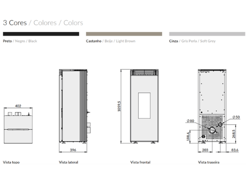 Consumo de pellets: 0,6 - 1,7 Kg/h