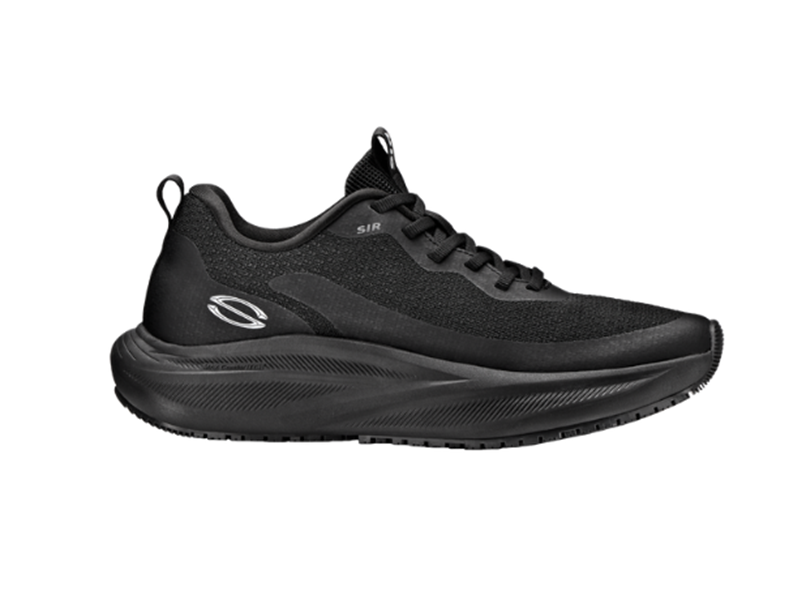 Calçado profissional baixo com parte superior em malha de poliéster.