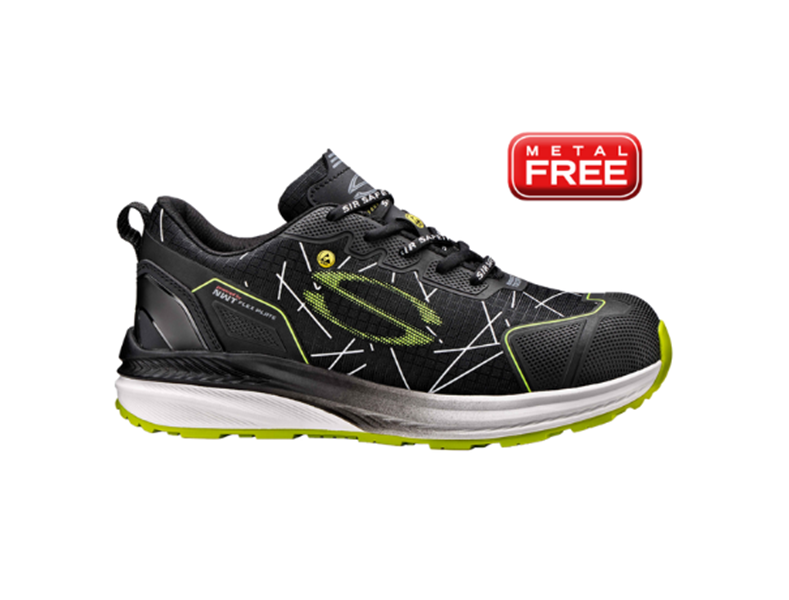 Calçado baixo, sem metais, com biqueira de fibra de vidro Nano e NWT - tecido não tecido ultraleve, tipo PS. Equipado com uma parte superior em nylon. As palmilhas em Air-mix anatómicas com propriedades antichoque de espessura variável: 3 mm na parte da frente e 10 mm na zona do calcanhar. Ajudam a reduzir a fadiga do pé e, sendo intercambiáveis, garantem a limpeza e a higiene. Anti-estáticas. Forro DRY PLUS em poliéster de tecido apertado com proteção extra na zona do calcanhar, com um elevado poder de drenagem e que reduz significativamente o efeito de sobreaquecimento resultante de uma utilização prolongada. A sola em EVA Super Foam/Rubberproporciona aderência em superfícies húmidas, mesmo na presença de hidrocarbonetos.