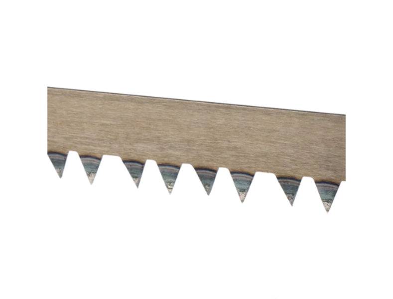 Arco de serra com secção reforçada e com protetor da mão para um corte seguro e cómodo. Consegue-se um corte fácil e reto, porque a folha se mantém tensa, reta e centrada durante o corte. Os dentes são temperados por indução de alta frequência, para se prolongar a vida útil da folha de corte. A altura dos dentes é homogénea para aumentar a resistência e o rendimento. A folha montada é de dentado universal para o corte fácil de seca.