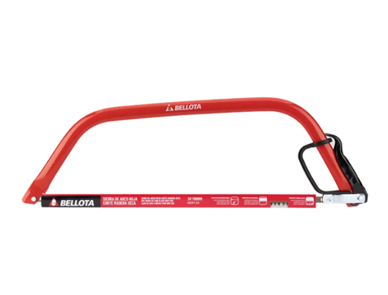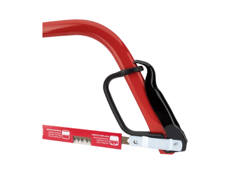 Arco de serra metálico, com folha com dentado universal para o corte de madeira seca. Secção do arco reforçada para garantir robustez e permitir que se consiga um corte reto e fácil. Protetor da mão para toda a segurança durante o uso.