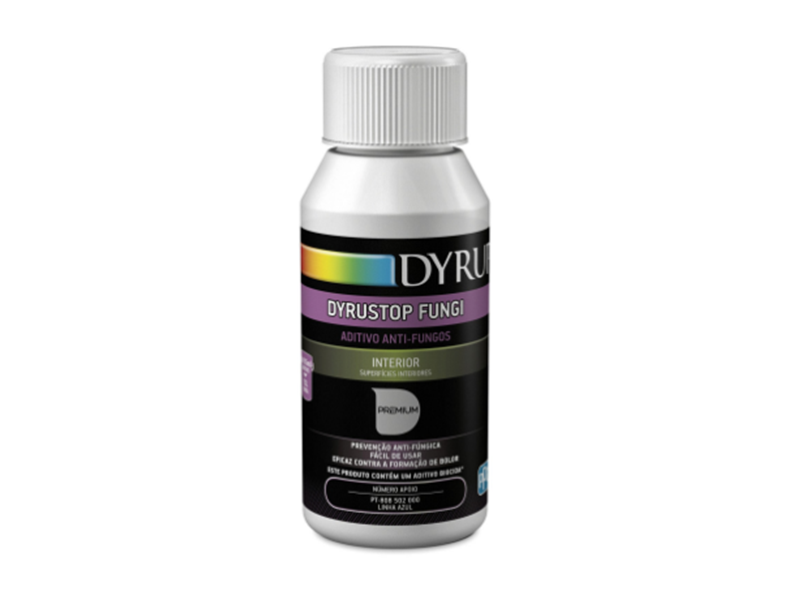 Dyrustop Fungi (solução preventiva antifúngica) é uma mistura de água, com agentes fungicidas e outros aditivos químicos.