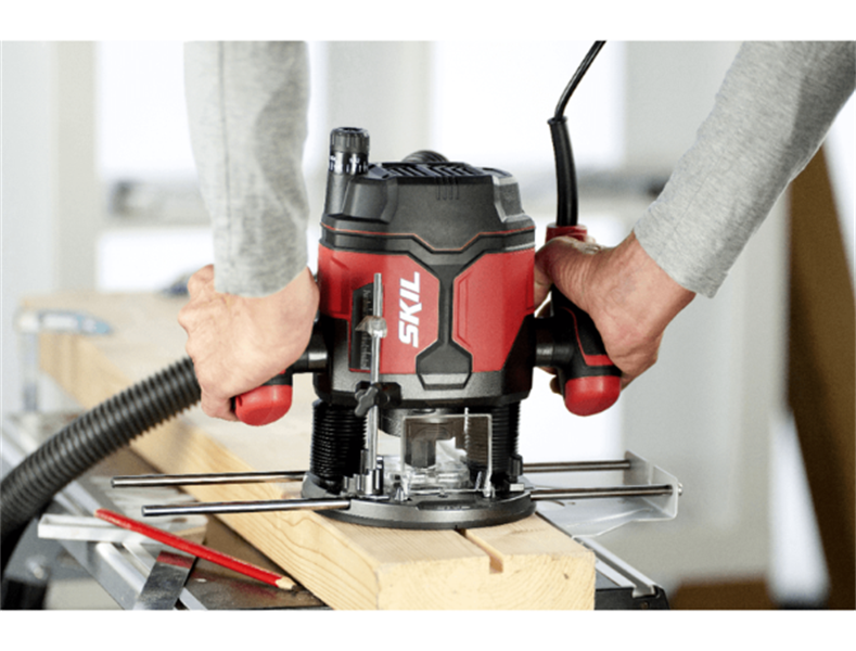 Tupia potente de 1400 W para fazer ensambladuras, chanfrar, cortar ranhuras e sulcos, arestas e perfis